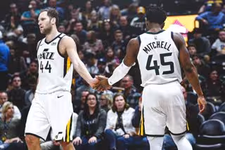 Bogdanovic y Mitchell celebran la victoria de Utah Jazz - UTAH JAZZ