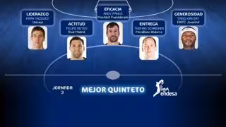 Fran Vázquez (Liderazgo), Andy Panko (Eficacia), Felipe Reyes (Actitud), Tariq Kirksay (Generosidad) y Thomas Schreiner (Entrega), conforman el Mejor Quinteto de la Jornada 3 de la Liga Endesa 2014-15.
