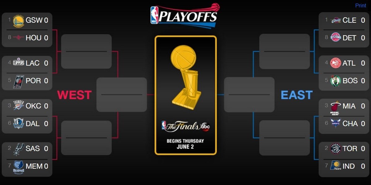 Por su parte, los Thunder de Ibaka, con Kevin Durant y Russell Westbrook en plena forma, vuelven a las eliminatorias por el título y parten como favoritos frente a los Mavericks del veterano Dirk Nowitzki, a los que han superado en sus cuatro duelos de este curso. El Oeste se completa con el emparejamiento entre Los Angeles Clippers y Portland Trail Blazers.