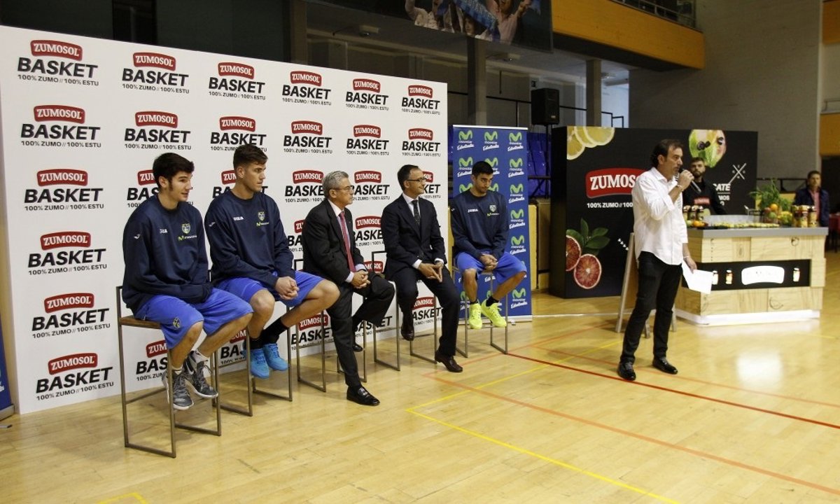 En el acto estuvieron presentes el director general de 'Zumosol', Juan Martínez; el presidente del Movistar Estudiantes, Miguel Ángel Bufalá, y los jugadores del conjunto madrileño Jaime Fernández, Darío Brizuela y Fran Guerra