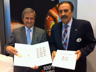 El presidente de Correos, Javier Cuesta, ha entregado la serie completa de sellos conmemorativos del Campeonato del Mundo que se celebra en España al presidente de la Real Federación Española de Balonmano (RFEBM) y del Comité Organizador, Juan de Dios Román, quienes lo presentaron en sociedad y explicaron la "gran acogida" que ha tenido en el mundo del coleccionismo.