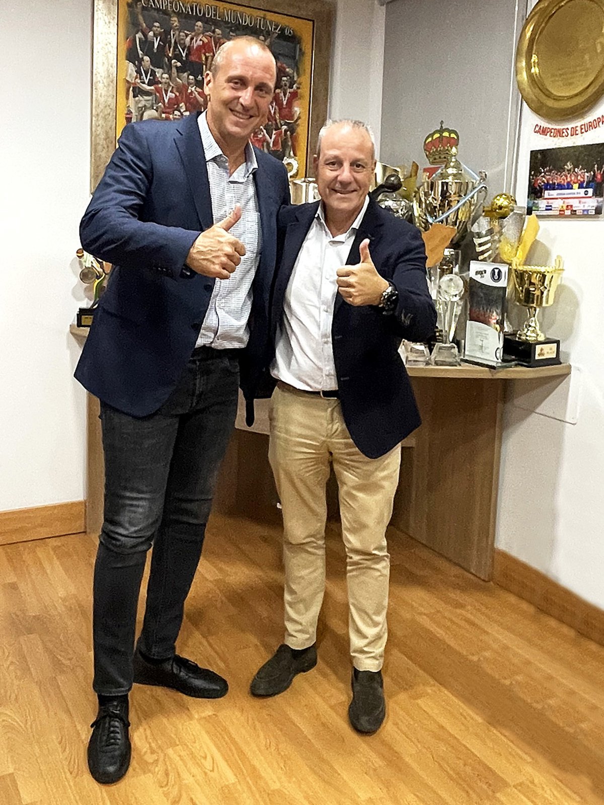 El exportero internacional David Barrufet (izquierda) se incorpora como asesor y embajador a la RFEBM, presidida por Francisco Blázquez (derecha) - RFEBM