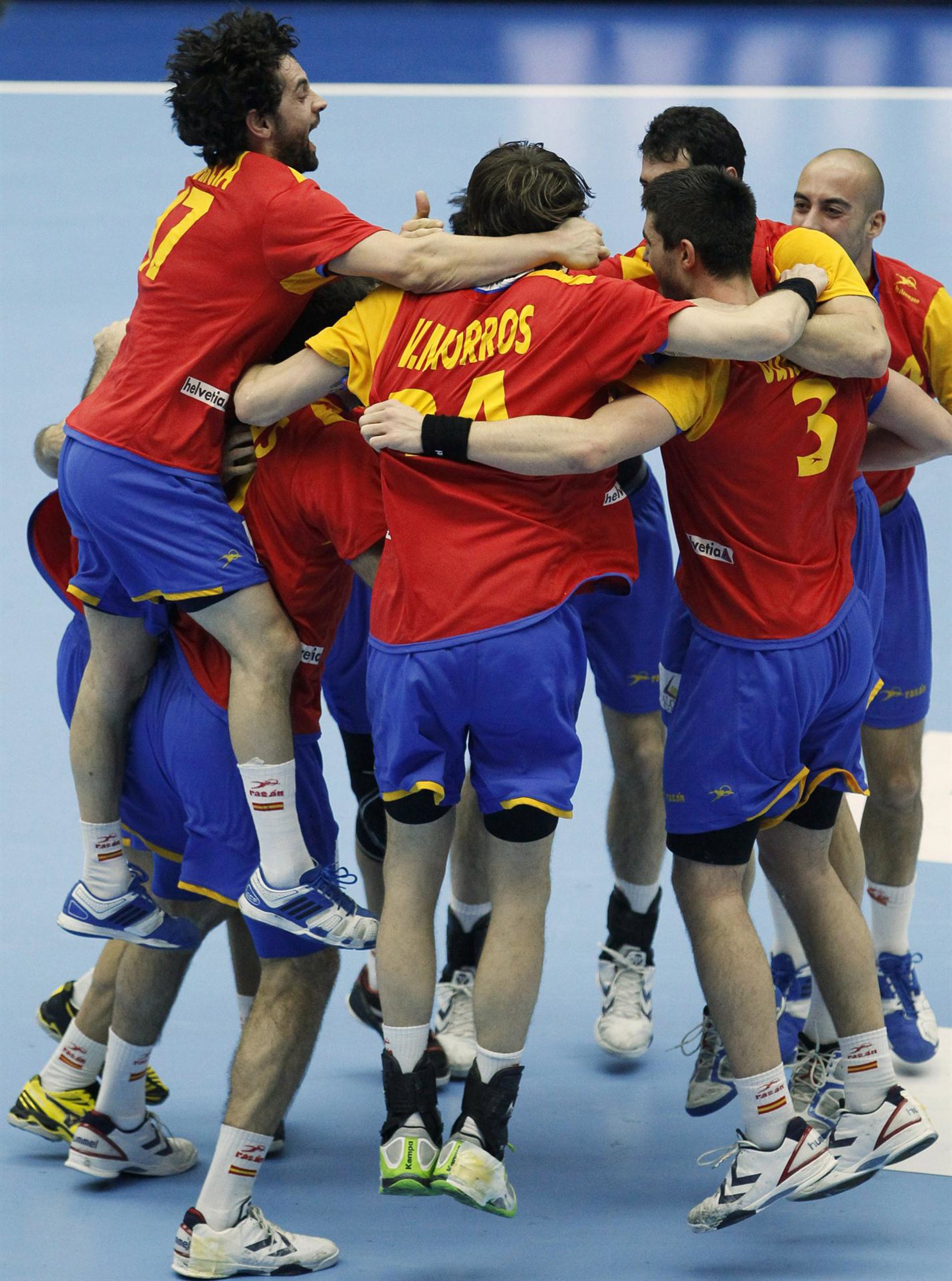 ESPAÑA: Sterbik (p); Maqueda (1), Romero (3, 1p), Cañellas (2), Aguinagalde (4), Raúl Entrreríos (2) y Rocas (-) --siete inicial-- Hombrados (p.s.), Juanín García (1p), Chema Rodríguez (-), Alberto Entrerríos (3), Morros (-), Gurbindo (4), Ugalde (1), Garabaya (-) y García Parrondo (2).