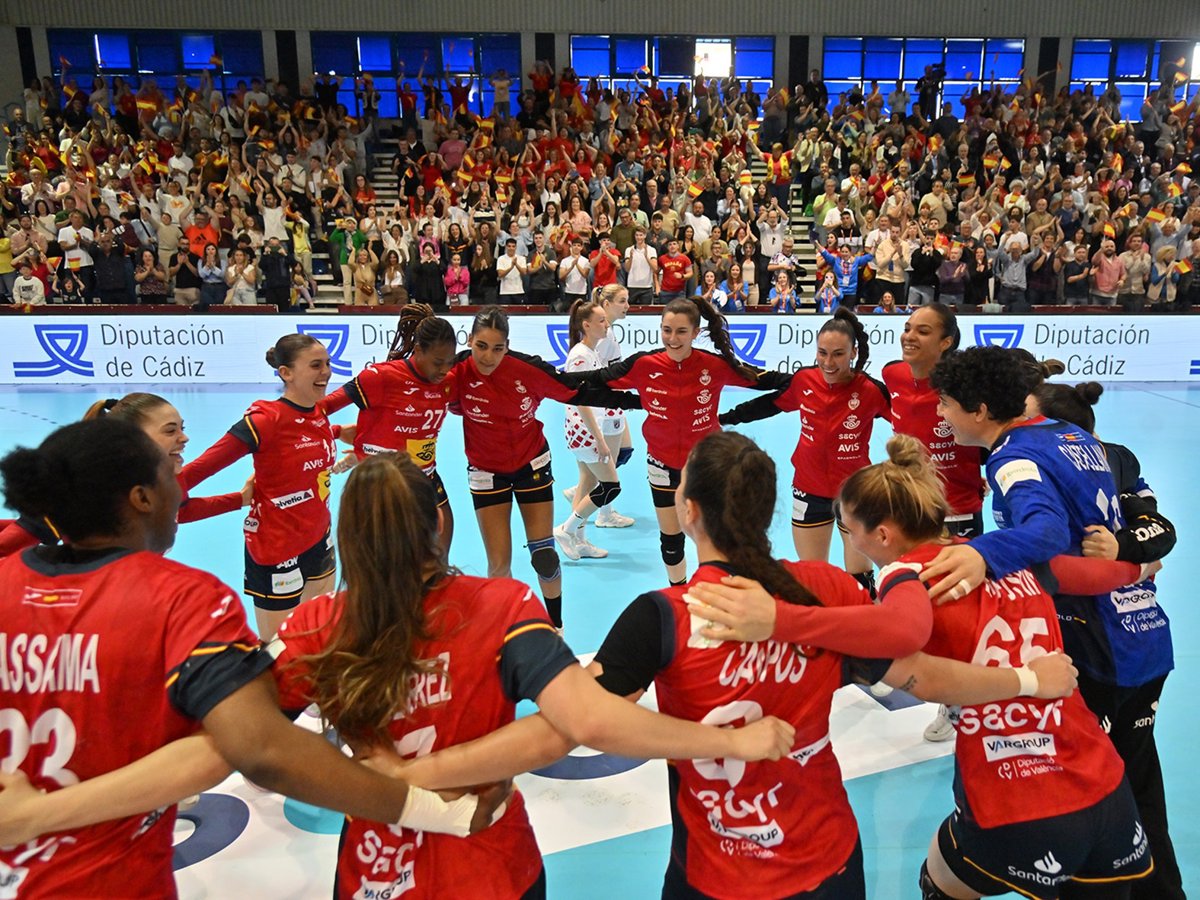 Archivo - La selección española femenina de balonmano, durante el partido en Algeciras ante Croacia del 13 de abril de 2025 - JLRECIO - Archivo