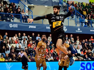 Imanol Garciandia lanza a puerta durante un partido de la selección española de balonmano - RFEBM/JL RECIO