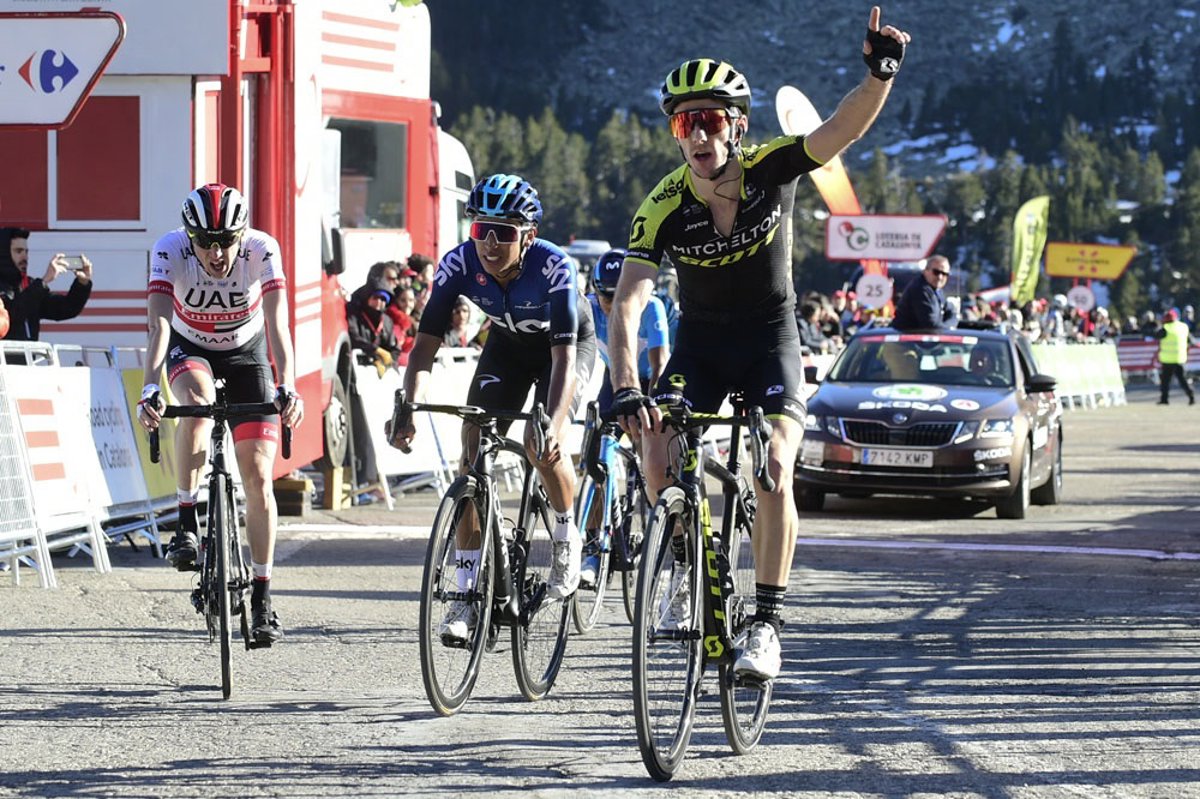 La etapa fue para Adam Yates, no de los más activos entre un quinteto cabecero formado junto a Egan Bernal (Team Sky), Nairo Quintana (Movistar Team), Miguel Ángel López (Astana) y Dan Martin (UAE), que aprovecharon el mal día de Alejandro Valverde, doble vigente campeón de la ronda catalana, al dejarse más de 2 minutos, por lo que el liderazgo ahora en su equipo pasa al escalador colombiano, a 35 segundos del liderato.