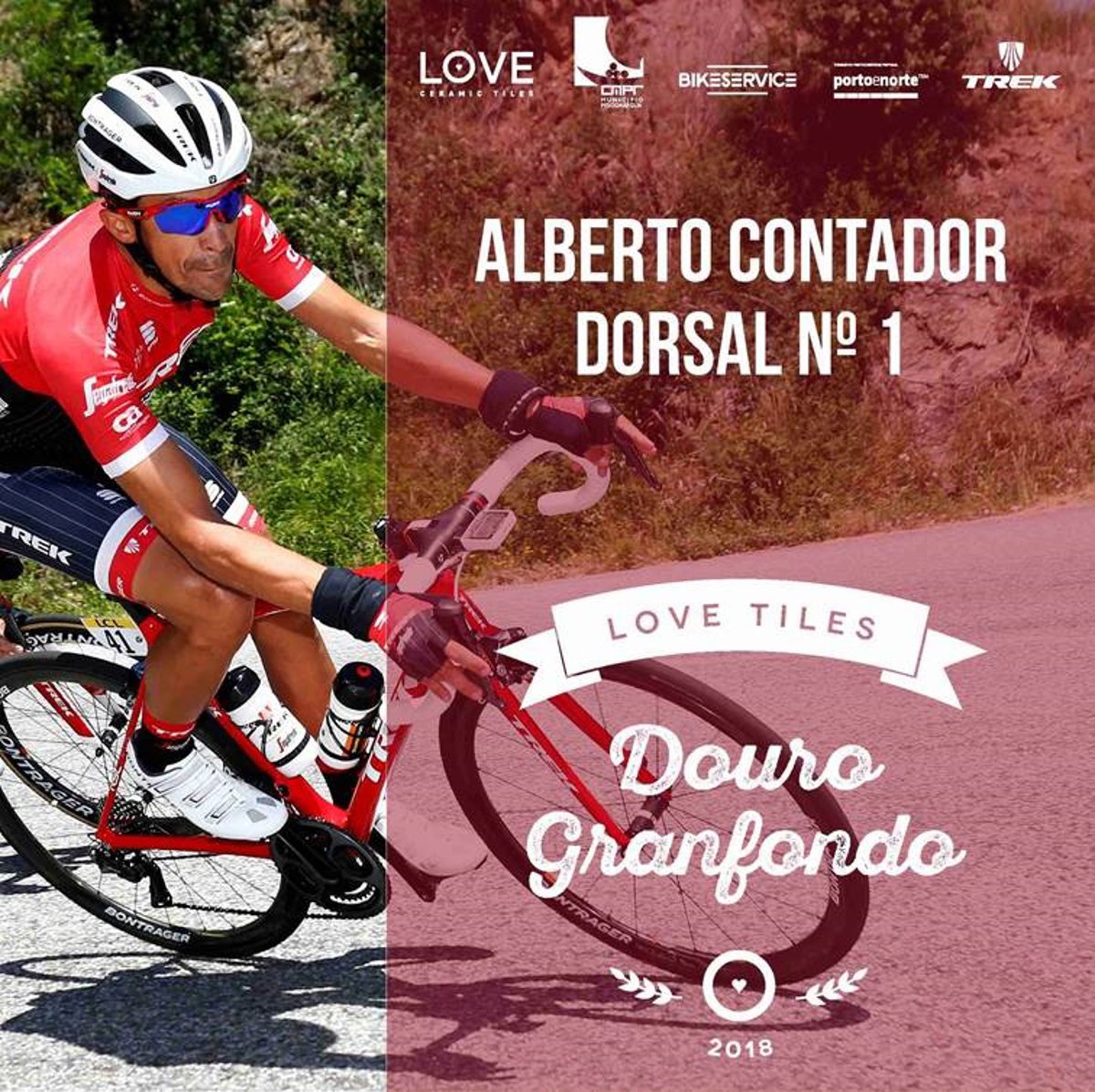 El ciclista español Alberto Contador, ganador de siete 'grandes' vueltas por etapas -2 Tours, 2 Giros y 3 Vueltas-, llevará el dorsal número uno en la edición de 2018 del Love Tiles Douro Granfondo, que se disputará el 6 de mayo, con salida y llegada en el Peso da Régua (Portugal), según informan los organizadores.