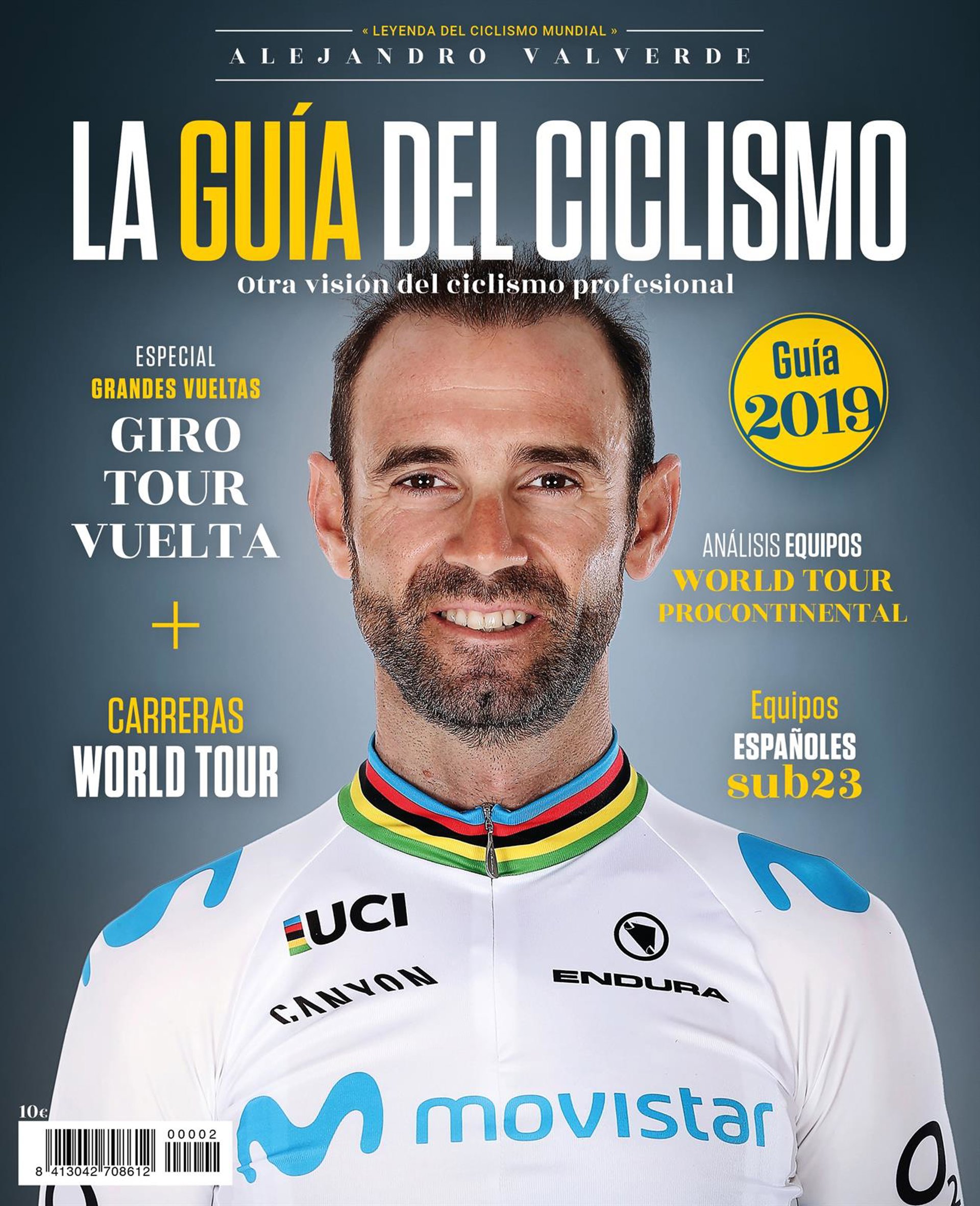 El campeón del mundo en ruta, Alejandro Valverde, es la imagen de portada de 'La Guía del Ciclismo 2019', la segunda edición del manual sobre el ciclismo profesional en el que se analizan las carreras del circuito World Tour, las españolas del calendario Europe UCI y los equipos profesionales.