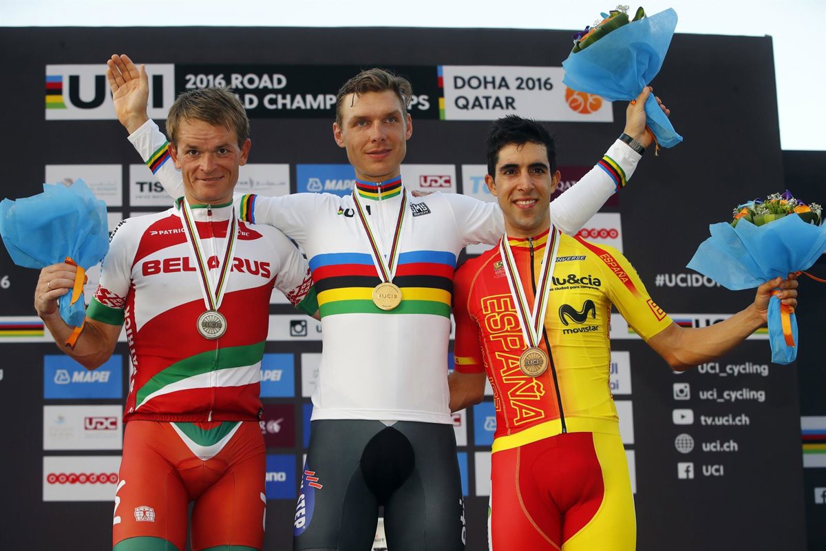 Castroviejo logró así una medalla para España en la crono once años después de que subiera al podio el cántabro Iván Gutiérrez, otro purasangre curtido en las cronos y que se colgó la plata en el Mundial de Madrid en 2005.