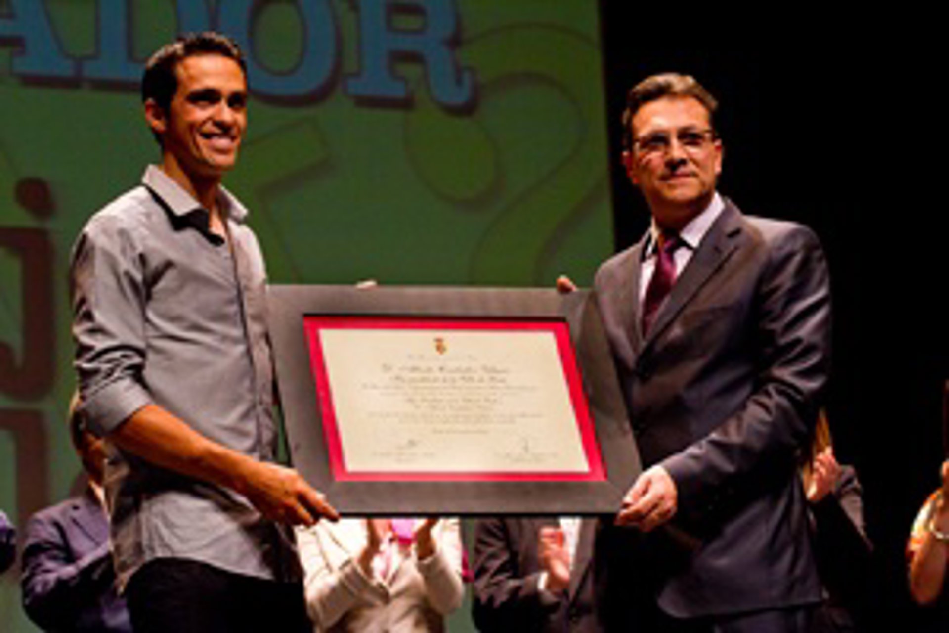 "Para nosotros también ostenta una triple corona (Giro, Tour y Vuelta) aún más brillante que la anterior: defensa de los valores del deporte, amor por su municipio y solidaridad con sus semejantes", añadió el regidor.