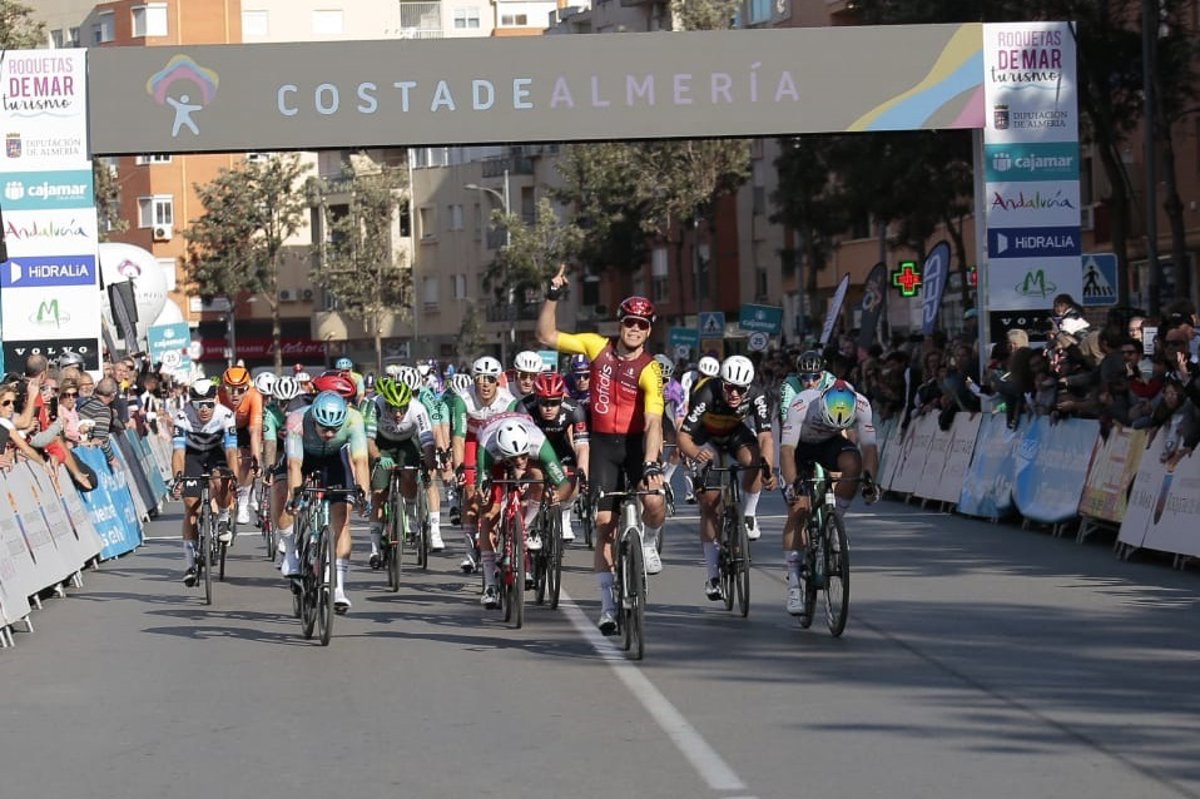 Archivo - El ciclista belga Milan Fretin celebra su victoria en la Clásica de Almería 2025 - CLÁSICA DE ALMERÍA - Archivo