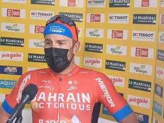 El ciclista italiano Sonny Colbrelli (Bahrain-Victorious) tras ganar la segunda etapa del Tour de Romandía 2021 - @BHRVICTORIOUS