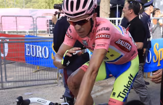 El pinteño se vio involucrado en una caída masiva producida a escasos 200 metros de la meta en Castiglione della Pescaia, tras una etapa de 183 kilómetros con inicio en Montecatini Terme. Pese a que entró en la línea de meta por su propio pie, sorprendió verle muy dolido en la ceremonia del podio.