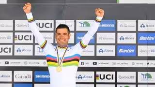 El ciclista español Eduardo Santas se ha enfundado esta madrugada el maillot arcoíris de campeón del mundo tras imponerse en la prueba de contrarreloj de la categoría C3 del Mundial de ciclismo adaptado de Baie-Comeau (Canadá), mientras que Ricardo Ten, en C1, y el relevo formado por Martín Berchesi, Sergio Garrote y Luis Miguel García-Marquina se llevaron el bronce.