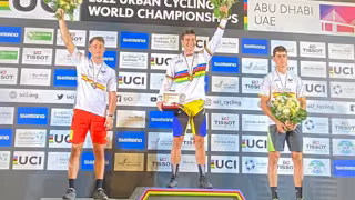 La selección española de ciclismo firmó este sábado una espectacular jornada en el Campeonato del Mundo de Ciclismo Urbano que se ha disputado en Abu Dhabi, destacando el oro de Eloi Palau en categoría élite 20", encabezando un triplete nacional en el podio.