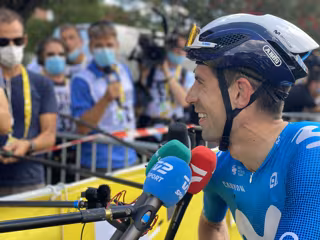 El ciclista del Movistar Imanol Erviti, tras quedar segundo en la duodécima etapa del Tour de Francia de 2021. - BETTINIPHOTO/MOVISTAR TEAM