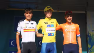 Pablo Torres (izda) en el podio final del Tour del Porvenir 2024 - RFEC