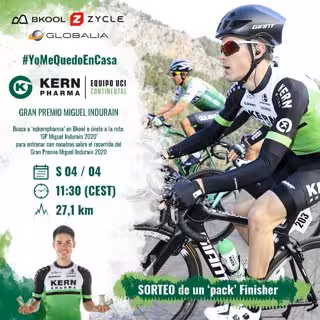 Para participar hay que entrar en Bkool y buscar en las competiciones en directo al usuario 'eqkernpharma', o bien entrar en la ruta 'GP Miguel Indurain 2020' en la portada del simulador. Habrá diez minutos para calentar antes de la salida lanzada y se sortearán lotes de