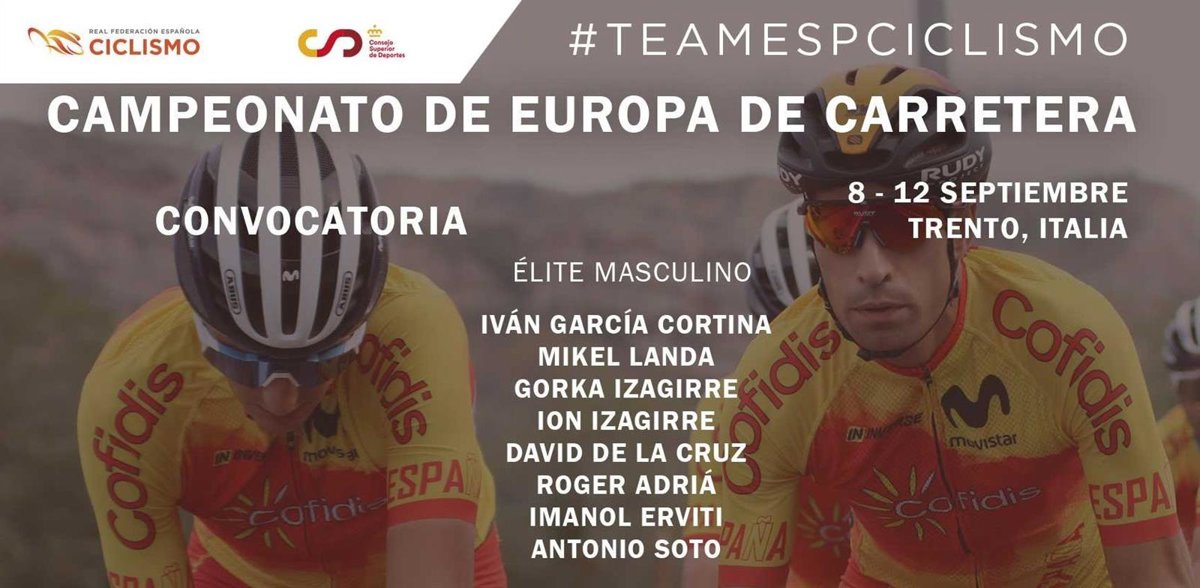 Iván García Cortina, Mikel Landa, Ion Izagirre, Gorka Izagirre, David de la Cruz, Imanol Erviti, Roger Adriá y Antonio Soto serán los 8 ciclistas que representarán a España en la prueba en línea del Europeo el próximo domingo 12, según ha hecho público el seleccionador nacional, Pascual Momparler.