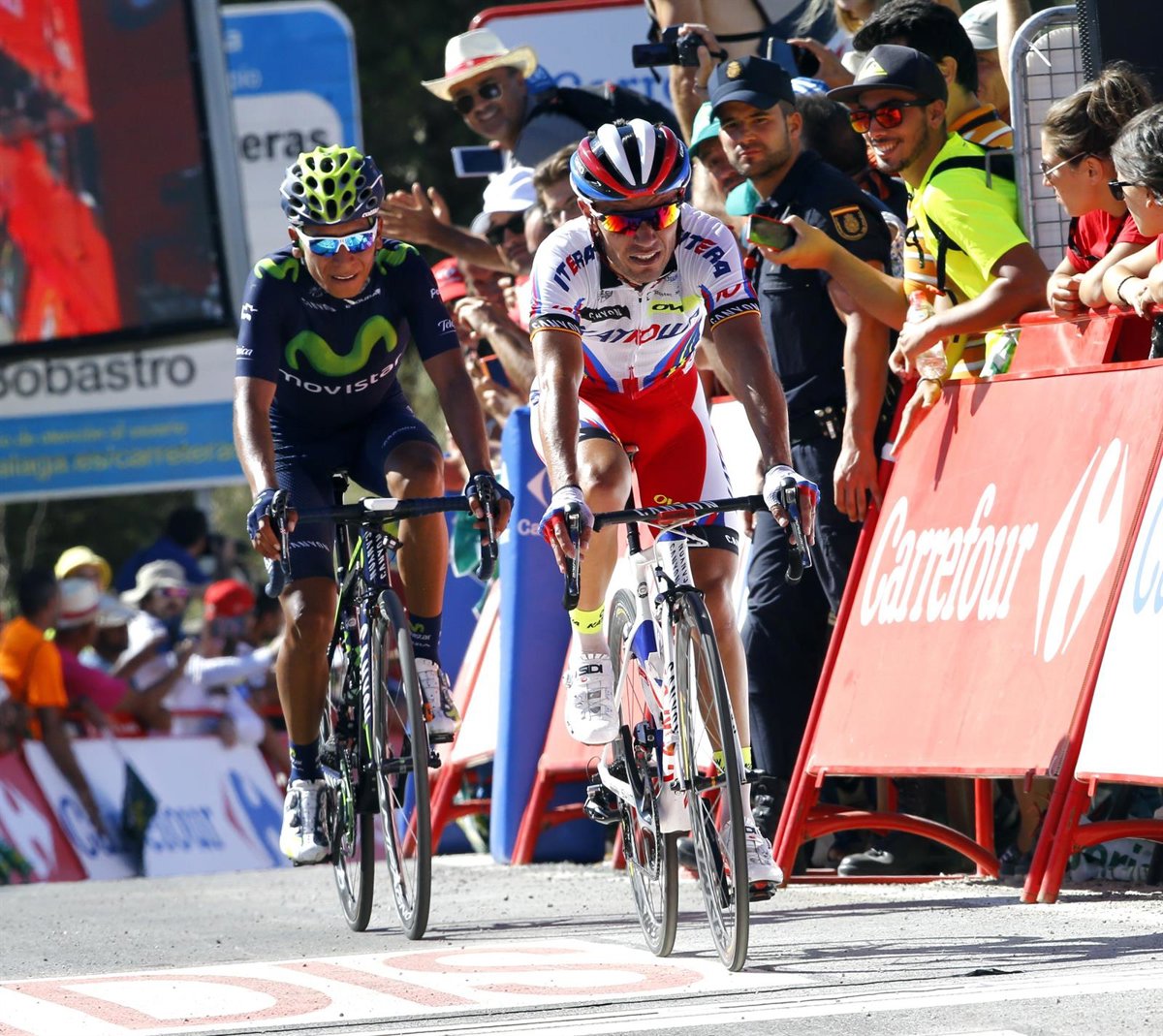 Después del sonrojo de la crono por equipos -en la que se anularon los tiempos para la general-, la primera llegada en alto en Caminito del Rey avanzó el espectáculo que puede deparar la montaña de la Vuelta. Nairo Quintana lanzó una ofensiva a 3 kilómetros de la meta que parecía preparada para el posterior salto de Alejandro Valverde y todo se volteó.