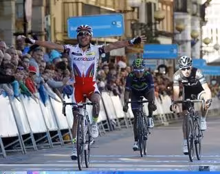 En cambio, fue Henao el que rompió el tenso ritmo del Movistar, pero se aferraron a su rueda Rodríguez y el ganador del Giro del pasado año, que se lanzaron a por la meta en el tobogán que les llevaba hacia la pancarta de meta. Pese al intento de Henao, 'Purito' demostró ser el más rápido y levantó, por vez, primera en este año los brazos victorioso.