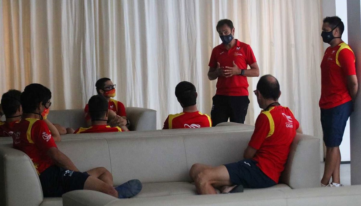 Archivo - El seleccionador nacional de ciclismo adaptado Félix García Casas habla con los componentes de la selección española durante una concentración - RFEC - Archivo