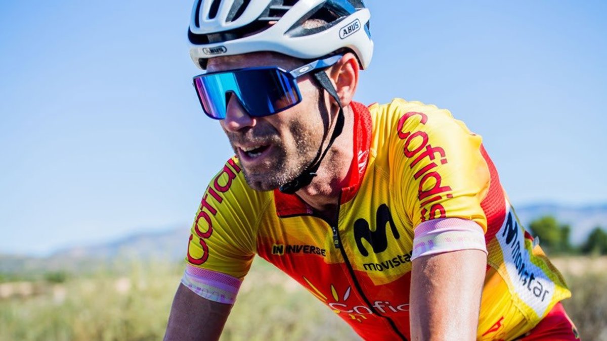 Alejandro Valverde entrenando con los colores de la selección española - RFEC
