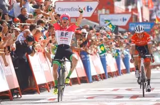 Simon Clarke estrenó su palmarés en este curso y volvió a ganar seis años después en la Vuelta. Sólo necesitó de sangre fría y acelerar en el momento justo para ganar el esprint a sus otros dos compañeros de fuga, el holandés Bauke Mollema (Trek-Segafredo) y el italiano Alessandro de Marchi (BMC).