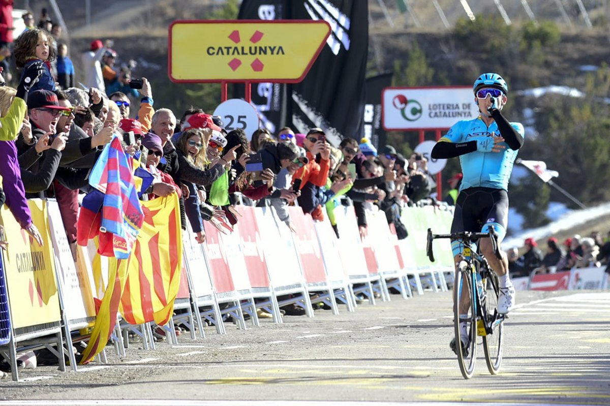El ciclista colombiano Miguel Ángel López (Astana) ha ganado este jueves la cuarta etapa de la Volta Ciclista a Catalunya, disputada entre Llanars y La Molina sobre 150,3 kilómetros, gracias a un ataque lejano en la subida final que no pudo ser respondido por Adam Yates (Mitchelton-Scott) ni Egan Bernal (Sky) y que le hace ser el nuevo líder de la carrera.