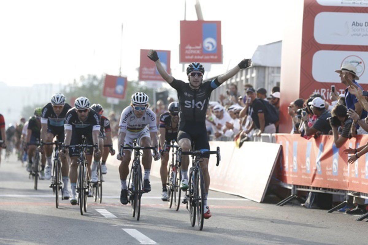 El ciclista italiano Elia Viviani, del Team Sky, se convirtió en el nuevo líder del Tour de Abu Dhabi, tras imponerse este viernes en la segunda etapa de la ronda, disputada entre Yas Marina y Yas Wall sobre 129 kilómetros, y marcada por la caída del belga Tom Boonen (Etixx-Quick Step).