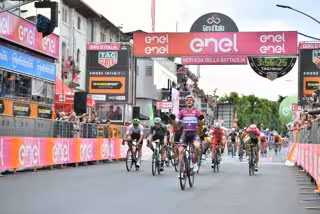 Viviani, cogiendo la trazada buena y sacando la cabeza en el último momento para no sufrir los efectos del viento, estuvo imponente y ganó con holgura para sumar su tercera victoria en el presente Giro de Italia, pero la primera en suelo italiano ya que sus triunfos en la segunda y tercera etapa fueron en Israel.