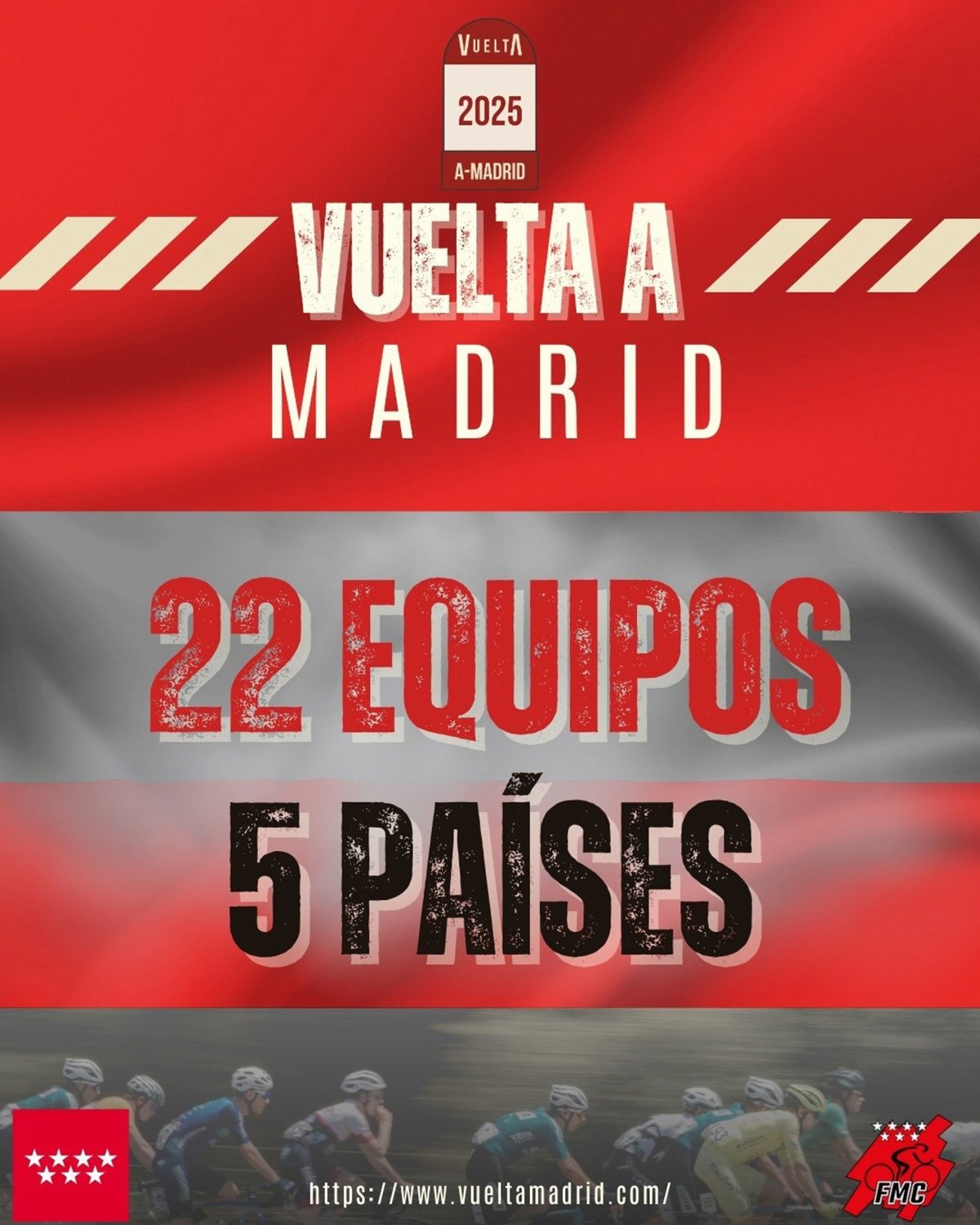 Un total de 22 equipos, tanto nacionales como internacionales, participarán en la Vuelta a Madrid sub-23, que se disputará entre el 8 y el 12 de julio, con 5 etapas que recorrerán toda la Comunidad de Madrid.