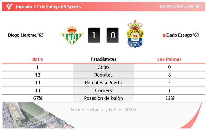 Laliga EA Sports - Betis 1 - 0 Las Palmas | RESULTADO, GOLES, ESTADÍSTICAS Y ANÁLISIS - EUROPA PRESS