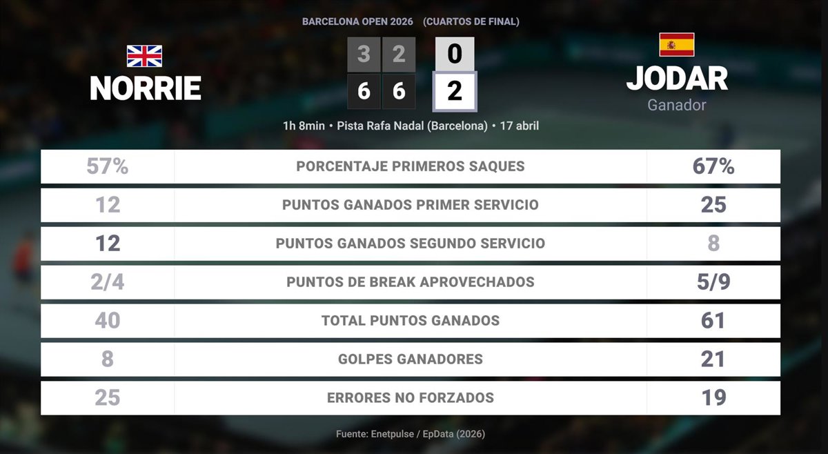 Cameron Norrie 0 - 2 Rafael Jodar: resumen y estadísticas del partido de Barcelona Open (ATP) - EUROPA PRESS (2026)