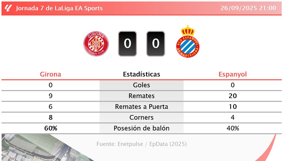 Girona 0 - 0 Espanyol: resumen y estadísticas del partido de la jornada 7 de LaLiga EA Sports - EUROPA PRESS (2025)