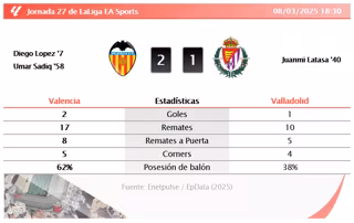 Laliga EA Sports - Valencia 2 - 1 Valladolid | RESULTADO, GOLES, ESTADÍSTICAS Y ANÁLISIS - EUROPA PRESS
