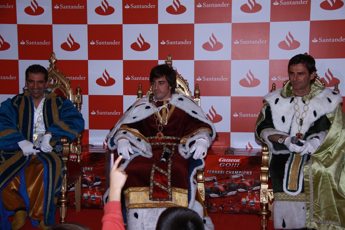 Finalmente, al término de la rueda de prensa, Alonso no dudó en vestirse de paje de los Reyes Magos y atender junto a Marc Gené y Pedro Martínez de la Rosa las preguntas de un grupo de niños entre los que repartieron regalos.