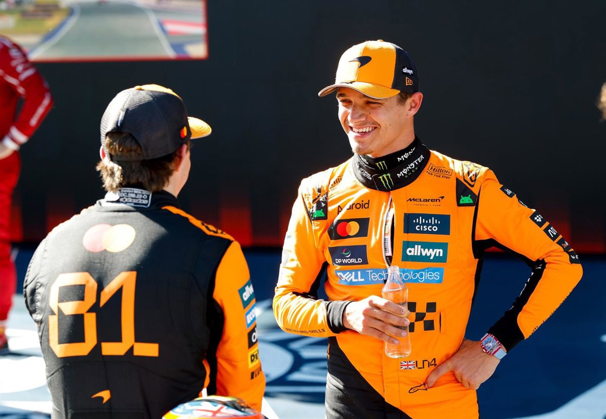 El piloto británico de F1 Lando Norris y el australiano Oscar Piastri, ambos de McLaren, charlan en el GP de Austria 2025. - DPPI / AFP7 / Europa Press