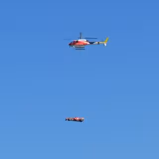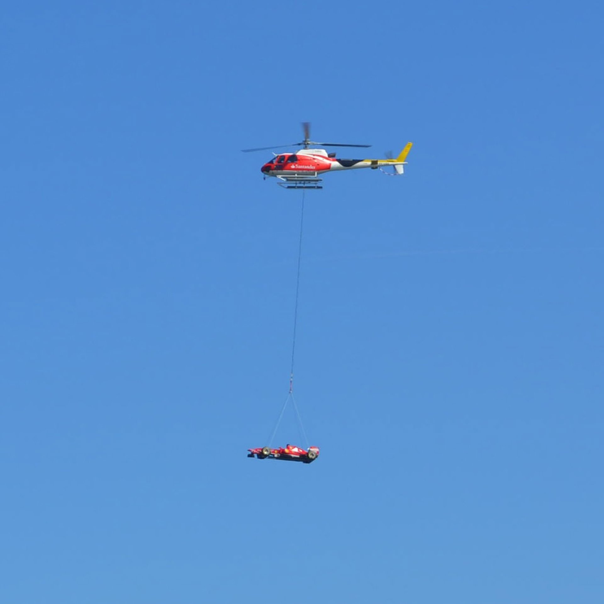 Banco Santander, patrocinador de la escudería Ferrari, exhibió este jueves el monoplaza de Fórmula 1 por Barcelona, con la particularidad de lo que hizo por el espacio aéreo usando un helicóptero.