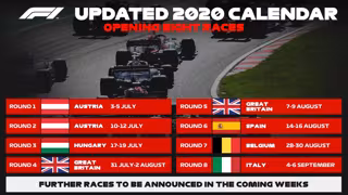 La Fórmula 1 y la FIA han anunciado este martes el calendario de las ocho primeras citas del Mundial 2020, después de que el 'Gran Circo' quedara paralizado por la pandemia del coronavirus, siendo la carrera inaugural en Austria (3-5 de julio) y el GP de España el fin de semana del 14 al 16 de agosto.