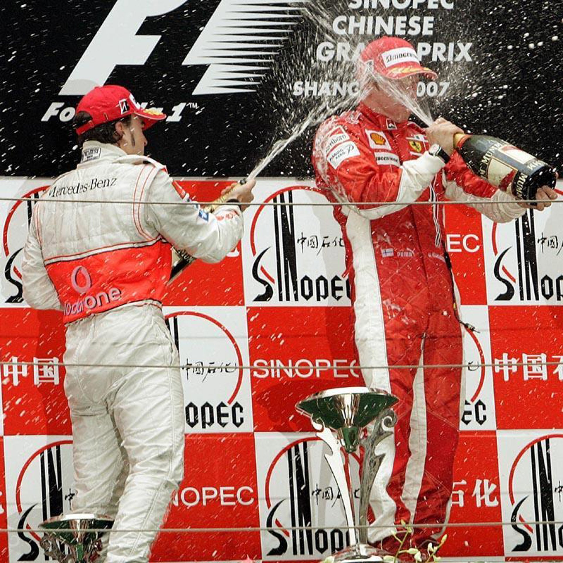 El español Fernando Alonso (McLaren-Mercedes) concluyó segundo en el Gran Premio de China, disputado hoy en el circuito de Shanghai (China), donde Kimi Raikkonen (Ferrari) fue el vencedor, y mantiene intactas sus opciones de conseguir su tercer título Mundial consecutivo a falta de la última carrera, después del abandono de hoy de su compañero de equipo Lewis Hamilton (McLaren-Mercedes).