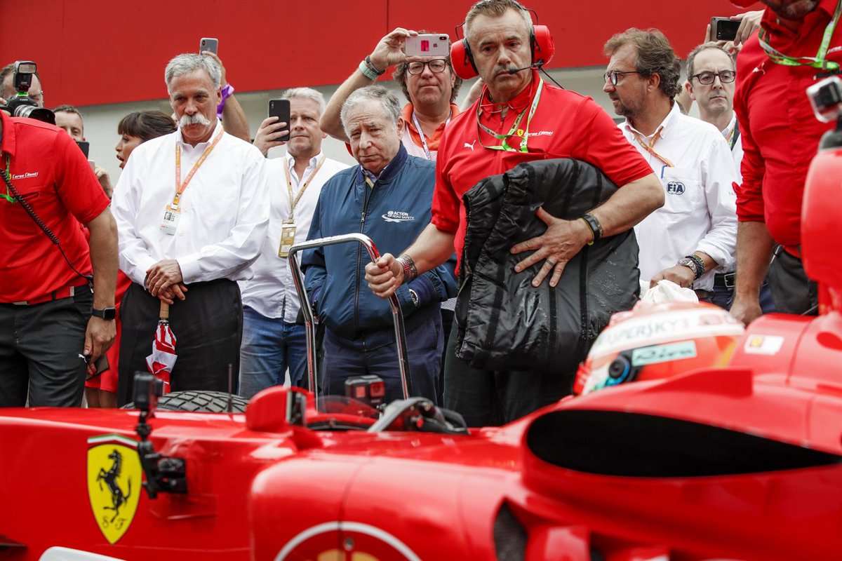 TODT Jean (fra), FIA President, and CAREY Chase (usa), Chairman and CEO Formula One Group FOG, watching Mick Schumacher driving the Scuderia Ferrari F2004 of his father Michael, during the 2019 Formula One World Championship, Germany Grand Prix - FLORENT GOODEN / DPPI Media / AFP7 / Europapress