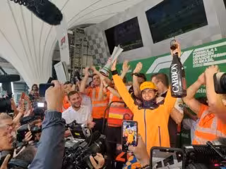 Carlos Sainz celebra su podio en el GP Brasil 2019 - TWITTER.COM/MCLARENF1 - Archivo