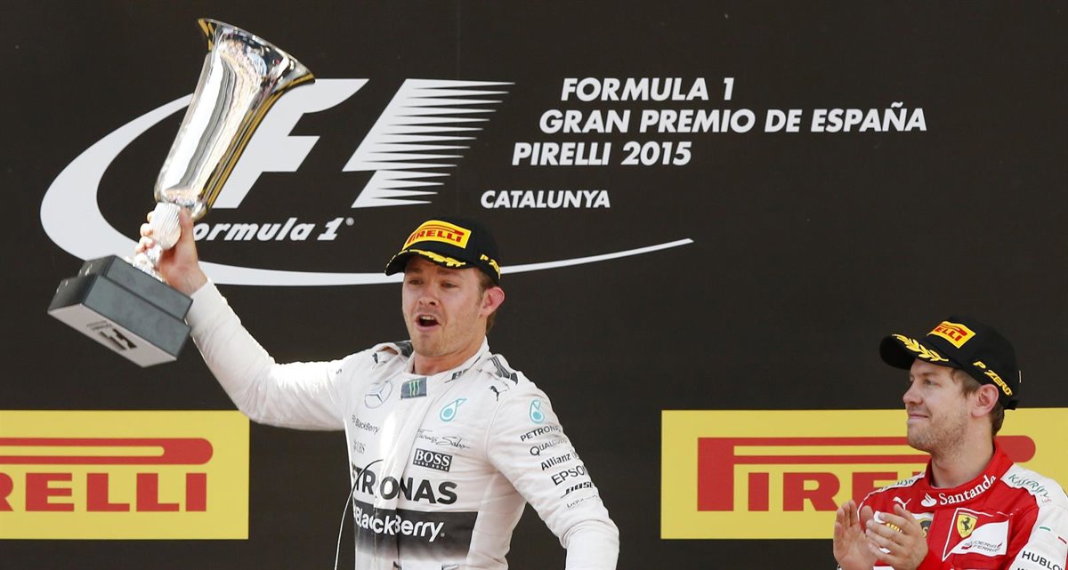 El piloto alemán Nico Rosberg (Mercedes) ha logrado este domingo la victoria en el Gran Premio de España de Fórmula 1, quinta prueba del Mundial disputada en el Circuit de Barcelona-Catalunya, seguido de su compañero Lewis Hamilton y Sebastian Vettel (Ferrari), mientras que los españoles Carlos Sainz (Toro Rosso) y Roberto Merhi (Manor) acabaron en 9ª y 18ª posición respectivamente y Fernando Alonso (McLaren) tuvo que abandonar en la vuelta 27 por problemas de frenos.