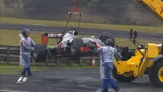 Durante la vuelta de formación, el francés Romain Grosjean (Haas) sufrió aquaplaning y perdió el control de su monoplaza, que se estrelló contra el muro. La suspensión delantera quedó destrozada y el piloto galo no podrá formar en parrilla, en la que tenía previsto salir séptimo.