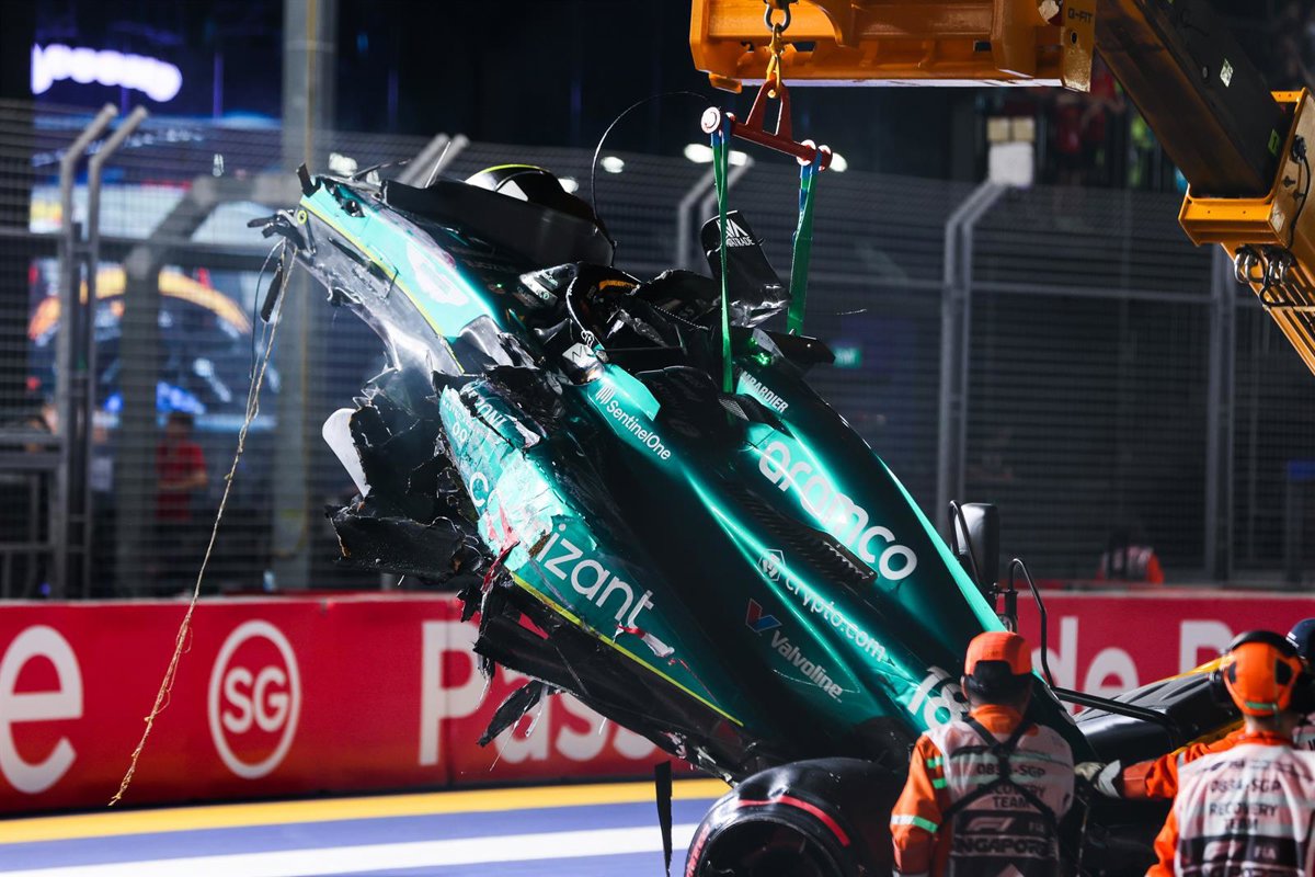 Durante la Q1 de la calificación del sábado en el GP de Singapur el pasado fin de semana, con el crono ya a cero y algunos pilotos en vuelta lanzada tratando de mejorar sus registros, Stroll sufrió un duro accidente en la última curva del renovado trazado asiático, provocando la bandera roja.