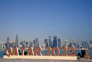 16 November 2022, Qatar, Doha: A Qatar 2022 sign is pictured at the Doha Corniche ahead of the 2022 FIFA Qatar World Cup. Photo: Adam Davy/PA Wire/dpa - Adam Davy/PA Wire/dpa