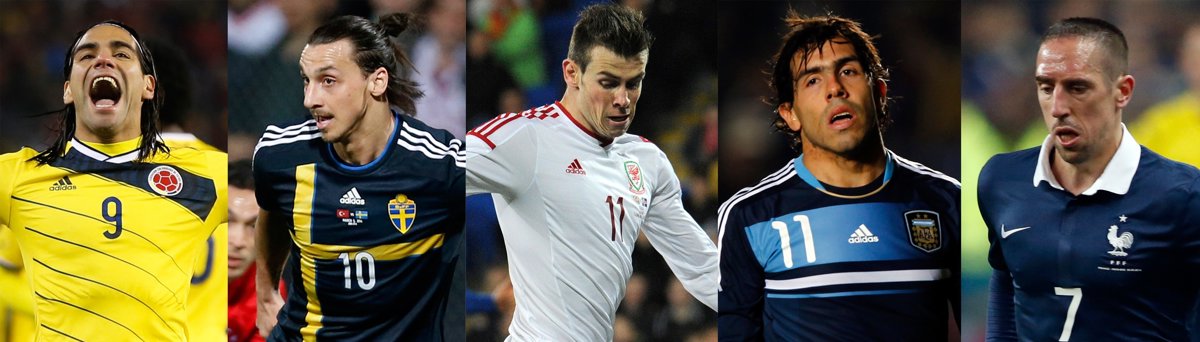 El Mundial de Brasil contará con muchas de las grandes estrellas del fútbol internacional, pero también con grandes ausencias, como las de Radamel Falcao, Zlatan Ibrahimovic, Gareth Bale, Carlos Tévez y Franck Ribéry, quienes, por diferentes motivos, lideran una lista de bajas notables en el evento que comienza el próximo 12 de junio.