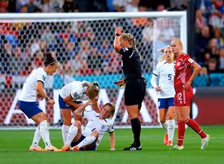 Keira Walsha yace en el suelo tras hacerse daño en la rodilla durante el duelo ante Dinamarca en el Mundial de Australia y Nueva Zelanda - Isabel Infantes/Pa Wire/Dpa