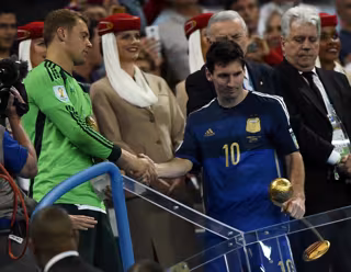 El '10' de la albiceleste no pudo demostrar en Brasil su mejor fútbol pero sí fue decisivo con cuatro tantos durante la primera fase del torneo --ante Bosnia, Irán y Nigeria por partida doble--, y algunos destellos en los cruces, asistencia a Di María en el gol frente a Suiza, que le han servido para adjudicarse el Balón de Oro del Mundial hasta ahora en manos del uruguayo Diego Forlán, vencedor en Sudáfrica 2010.